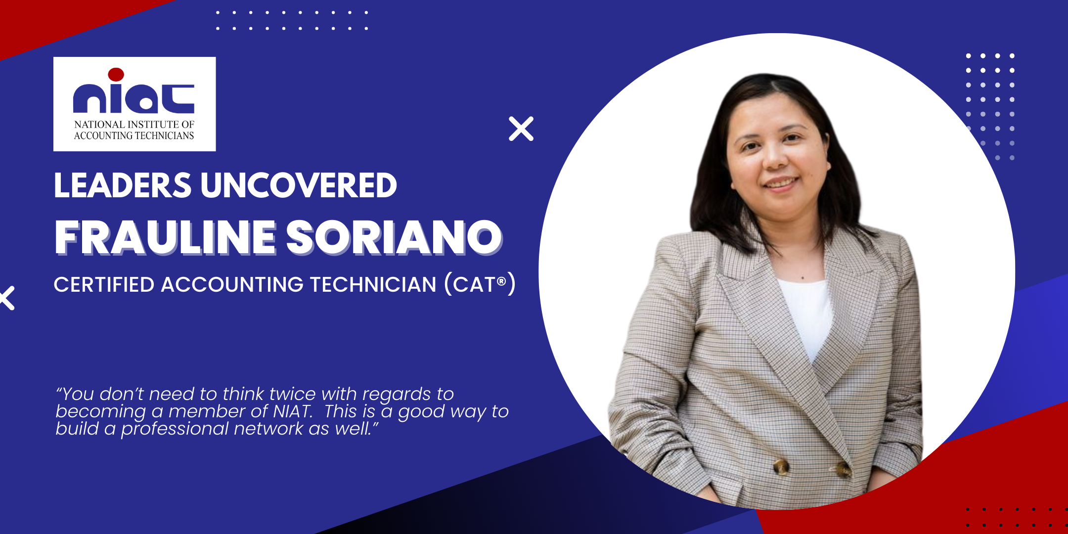 “Invest in yourself through NIAT certifications. It’s best to have the education, certification, knowledge and skills at the earliest. You would never know when an opportunity will come to you. I can totally speak from experience. Trust the process. Eventually, your certification will take you to a better place.”