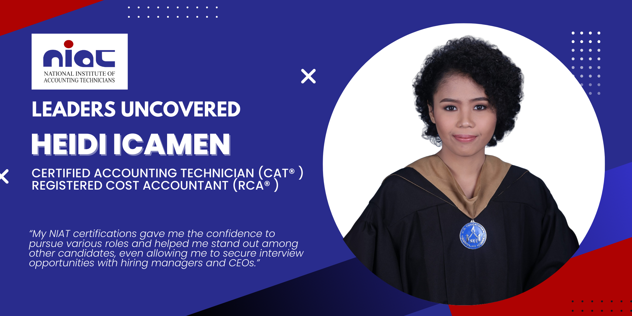 “Passing the bookkeeping examination opened my eyes to the vast opportunities for securing high-paying positions, and I can now confidently say that it proved to be true. It also inspired me to pursue two additional certifications with NIAT: the Registered Cost Accountant (RCA) and Certified Accounting Technician (CAT), both of which I successfully passed and have since applied for certification.”